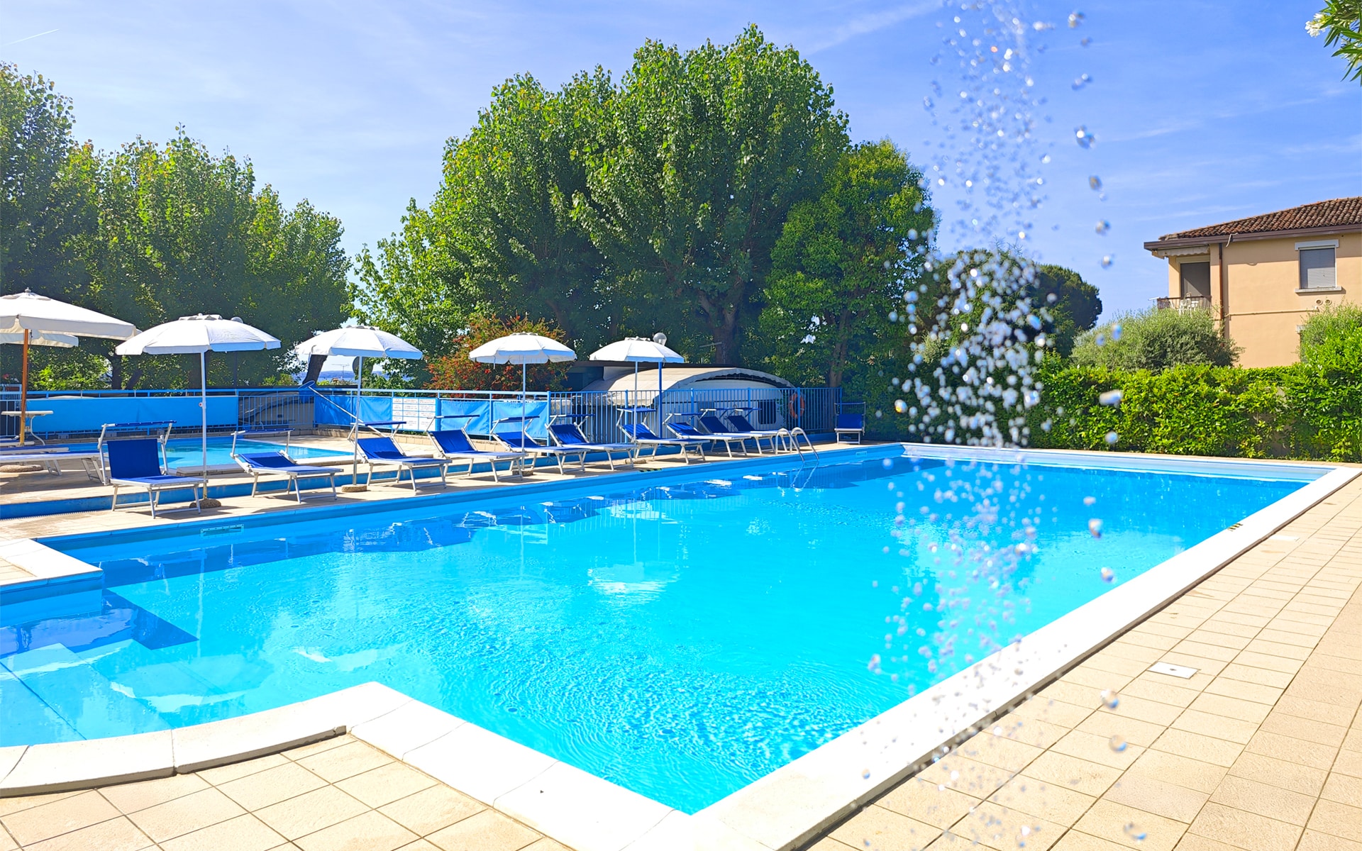 Sunbathing area, a shallow pool suitable for children and a larger pool for those who want to swim and relax.